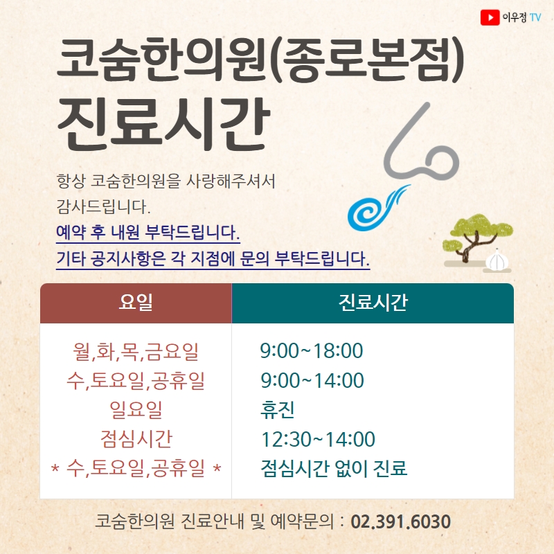 [진료시간 안내] 코숨한의원(종로본점)