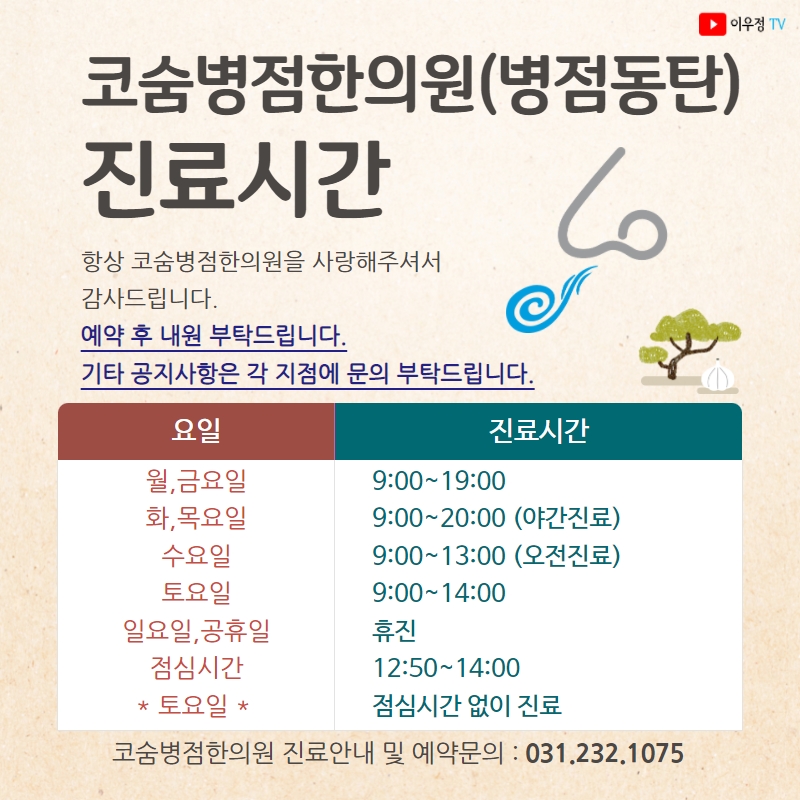 [진료시간 안내] 코숨병점한의원(경기병점동탄지점)