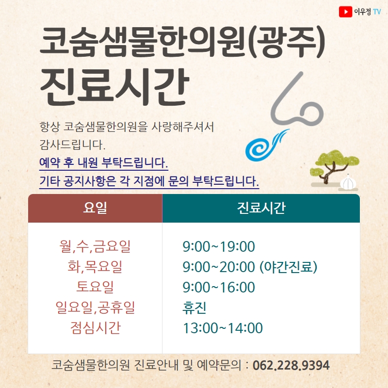 [진료시간 안내] 코숨샘물한의원(광주지점)