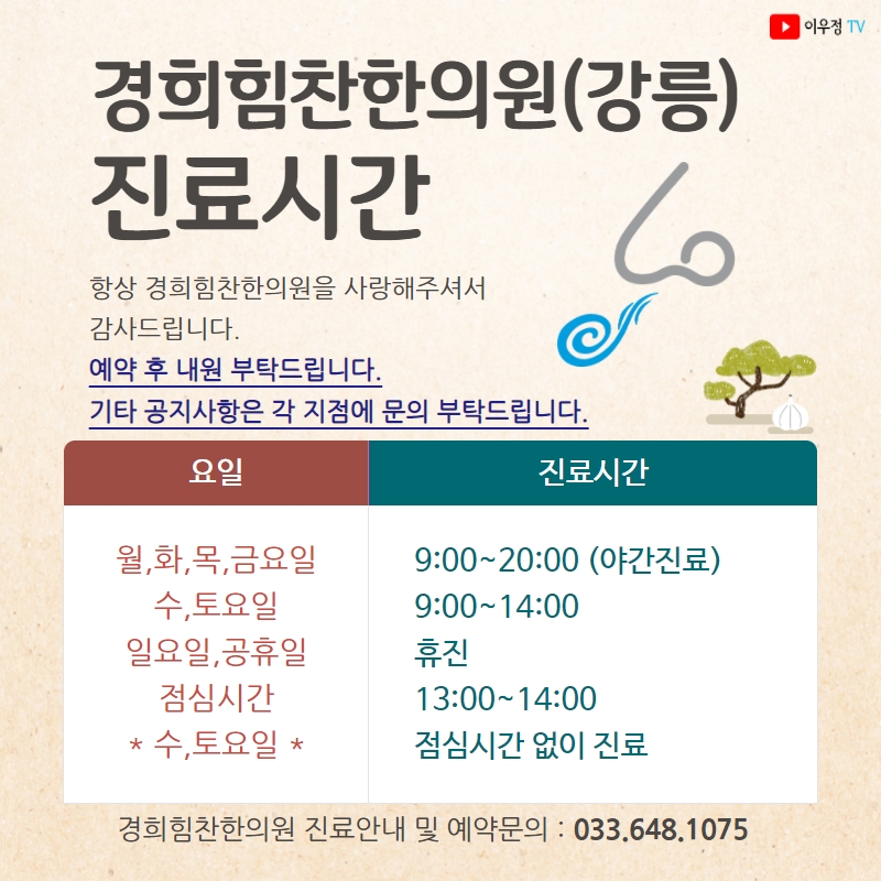 [진료시간 안내] 경희힘찬한의원(강원강릉지점)