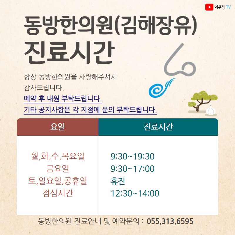 [진료시간 안내] 동방한의원(경남김해장유지점)
